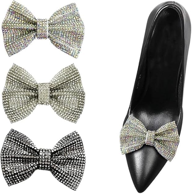 2Pcs Shoe Charms Luxurious Rhinestone Bow Shoe Charms Alloy Bow Shoe Charms Detachable Clip On Bow Charms for High Heels